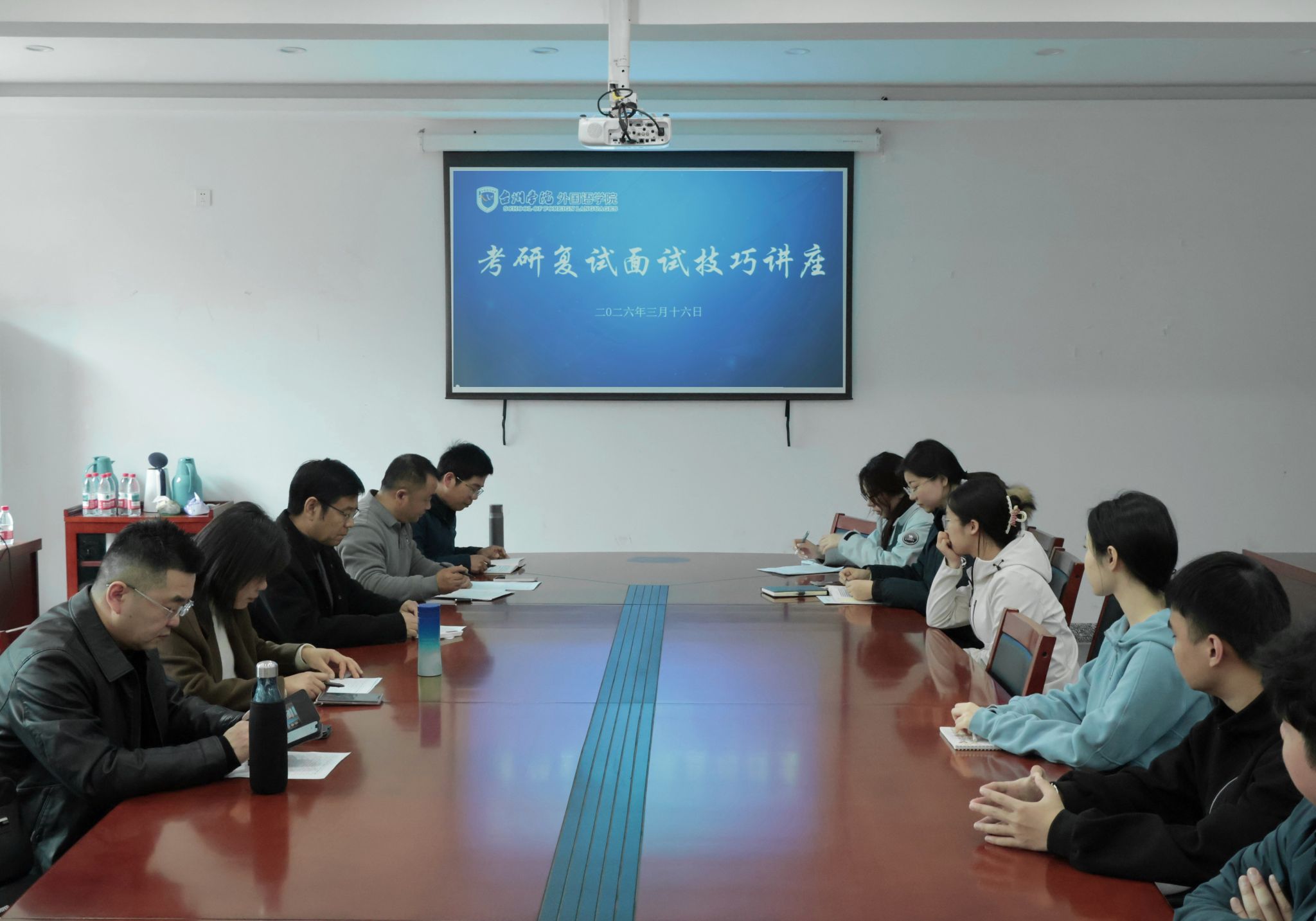 为助力我院考研学子从容应对复试考核,全面提升面试综合素养与应试能力,3月16日下午,外国语学院在4102会议室成功举办考研复试面试技巧专题讲座。本次讲座由外国语学院院长王刚主讲,李彬彬、于德伟、刘常民三位老师现场实操指导。