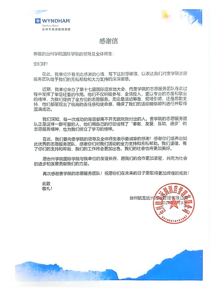 为进一步协助主办方做好会议组织与接待工作,国际学院选派来自摩洛哥、孟加拉国、尼日利亚等国的18名国际学生志愿者参与大会的服务工作。认真的工作态度和良好的精神风貌获得了主办方高度评价,近日,承办单位特地向国际学院发来了感谢信,肯定我校国际学生们用自己的行动诠释了“奉献、友爱、互助、进步”的志愿服务精神,也为他人树立了学习的榜样。