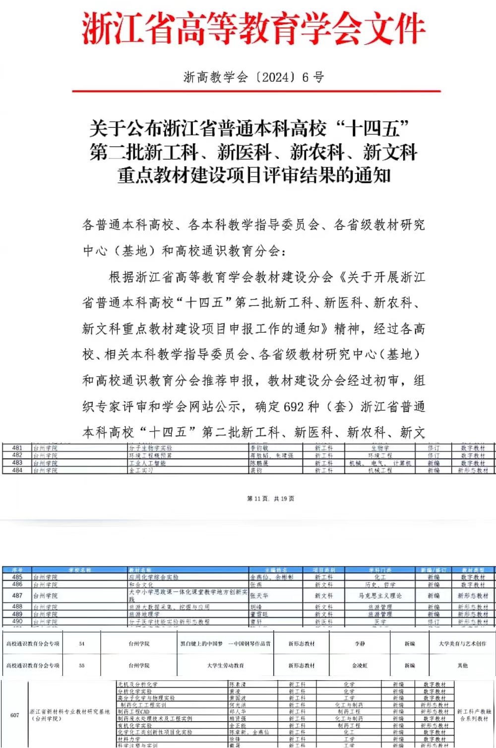 近日,浙江省高等教育学会公布了浙江省普通本科高校“十四五”第二批新工科、新文科、新医科、新农科重点教材建设项目,我校22种教材成功入选省级重点教材立项建设名单,其中10部为浙江省新材料专业教材研究基地系列教材。