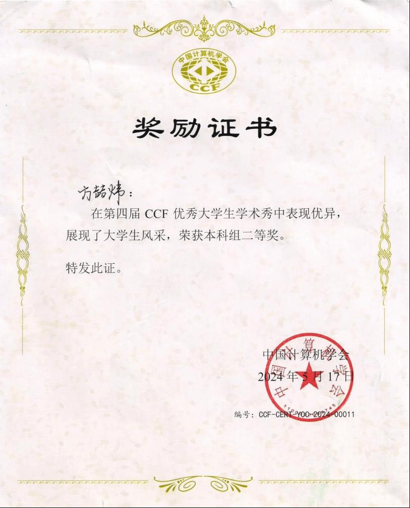 在“大学生学术秀”环节,来自CCF全国各地的40余名参赛选手进行学术秀展示、演讲。经过数个小时的精彩展示和评委组独立打分评审,分别确定了博士生组、硕士生组、本科生组的评比结果,每组分别产生一等奖1名,二等奖2名。