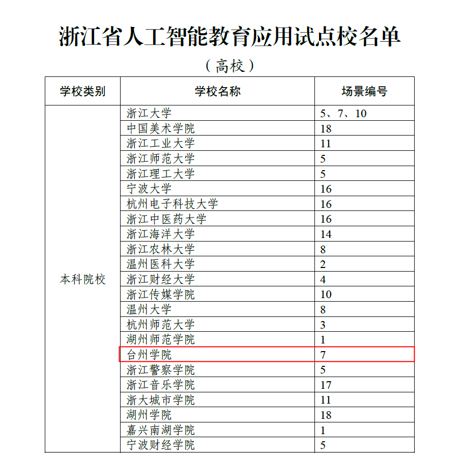 近日,浙江省教育厅办公室公布了浙江省人工智能教育应用试点校名单,共确定100所大中小学校为浙江省人工智能教育应用试点校,其中台州学院智享课堂项目成功入选。