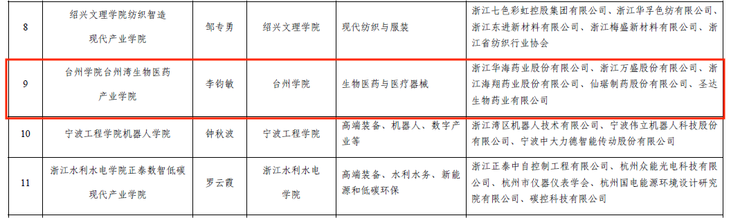 近日,浙江省教育厅、浙江省经济和信息化厅联合发布了《关于公布2023年省级重点支持现代产业学院建设点名单的通知》,我校台州湾生物医药产业学院获批立项省级重点支持现代产业学院建设点。