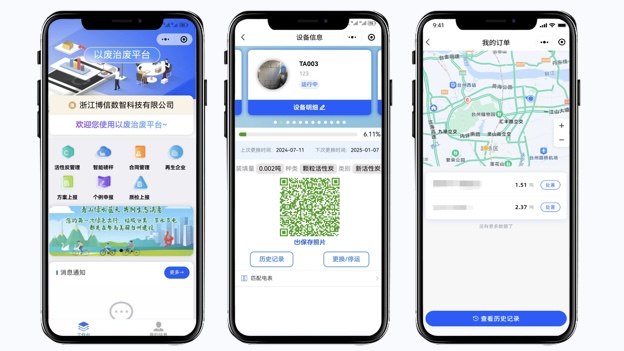 2022年,环科院公司立足于数字化改革,助力台州构建了“以废治废”活性炭全过程服务与监管体系。数字应用通过配置电量监控、智能磅秤等前端感知设备,运用智能预警、异常监测等算法模型,构建了废活性炭“使用-感知-更换-运输-再生-回用”的全生命周期的数字化服务与监管平台,已覆盖台州2300余家涉活性炭企业。同时,体系从设备研发、流程重塑、制度创新等多个角度出发,在“无废城市”建设中均取得实质性成果。根据测算,台州“以废治废”模式的推广实施可减少新活性炭生产30000吨/年,且较传统焚烧处置的碳排放量将降低34.3%,直接减少二氧化碳排放50080吨/年。