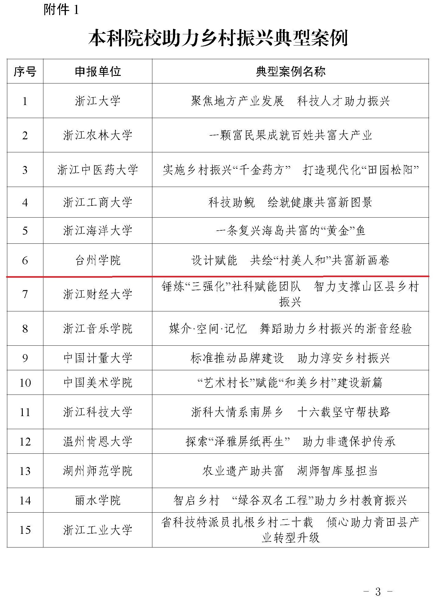 浙江省教育厅公布了浙江省第三届高校助力乡村振兴典型案例评选结果,在全省各高校申报基础上,我校申报的案例《设计赋能 共绘“村美人和”共富新画卷》成功入选,成为全省本科院校助力乡村振兴典型案例之一。