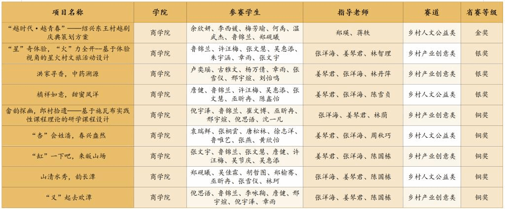 近日,第七届浙江省大学生乡村振兴创意大赛“建行裕农通杯”成功举办。我校商学院在参与的88所高校、1563支队伍中表现突出,荣获1项金奖、4项银奖、5项铜奖,充分彰显了学院在乡村振兴领域的创新精神和实践能力。