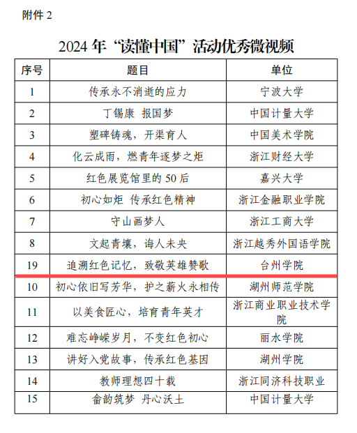 近日,省教育厅关工委公布了2024年“读懂中国”活动入选作品名单,商学院陈俊楠撰写的《残存的弹片》获优秀征文奖,人文学院章信诺、朱羿伊、马克思主义学院叶时菲拍摄的《追溯红色记忆,致敬英雄赞歌》获优秀微视频奖。
