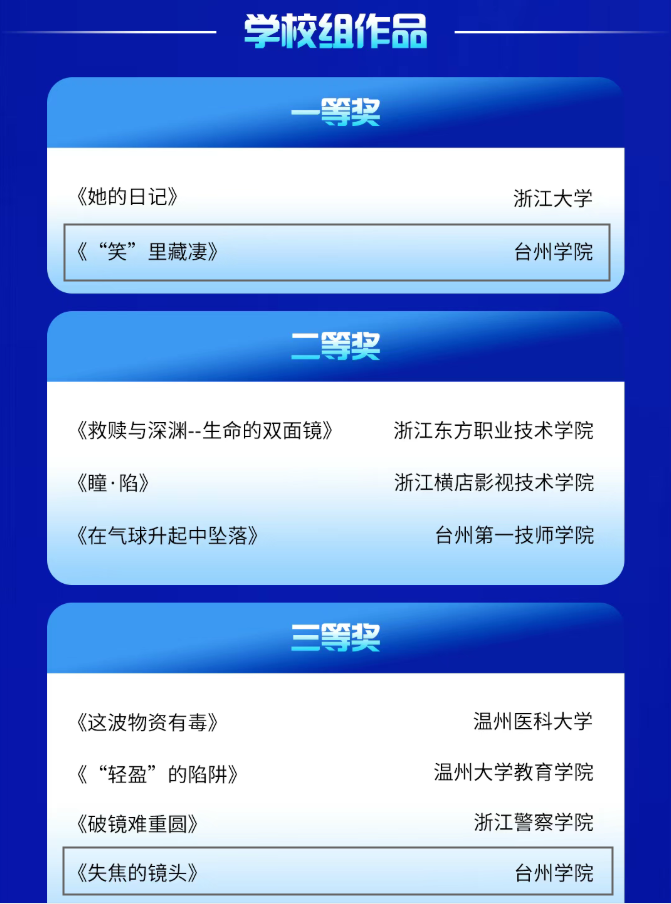 近日,由浙江省禁毒委员会办公室、省教育厅、省广播电视局等部门联合主办的浙江省禁毒微视频大赛评选结果揭晓。学校报送的作品成绩斐然,其中由马克思主义学院选送的《“笑”里藏凄》,由人文学院报送的《失焦的镜头》荣获大赛三等奖,展现了学校在禁毒宣传教育领域的多元探索与整体实力。