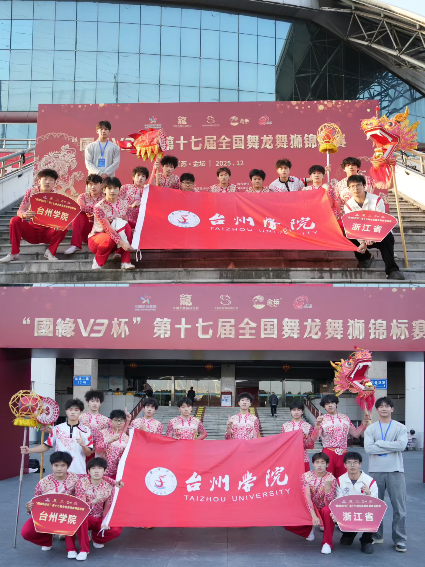 12月9日,第十七届全国舞龙舞狮锦标赛在江苏省常州市金坛区体育馆圆满落幕。作为全国龙狮运动领域的顶级赛事,本次大赛吸引了来自全国22个省(区、市)及粤港澳联队的94支精英代表队、近1400 名龙狮健儿同台竞技,上演了一场兼具力量与美感的文化盛宴。我校舞龙队在领队沈建敏,教练罗锡文、叶婷的联合指导下,凭借精湛技艺与默契配合奋勇争先,最终斩获全国第四名的优异成绩,更有12名队员凭借赛场高光表现,成功获评国家一级运动员称号,为校争光。