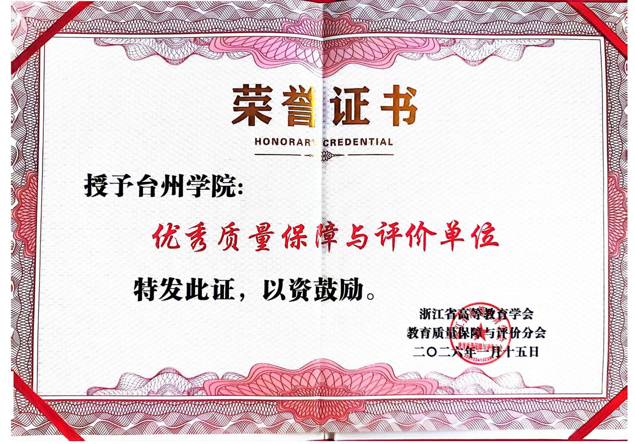1月15日,浙江省高等教育学会教育质量保障与评价分会召开工作年会,会议集中评选和表彰了优秀单位与先进典型,学校教育督导与教学评估中心获评“浙江省普通高校优秀质量保障与评价单位”。