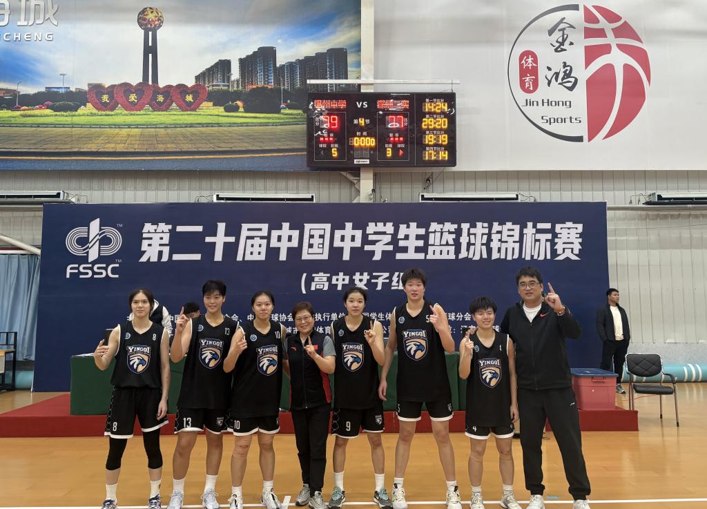 陈香仙团队在第二十届中国中学生篮球锦标赛上与队员们合影