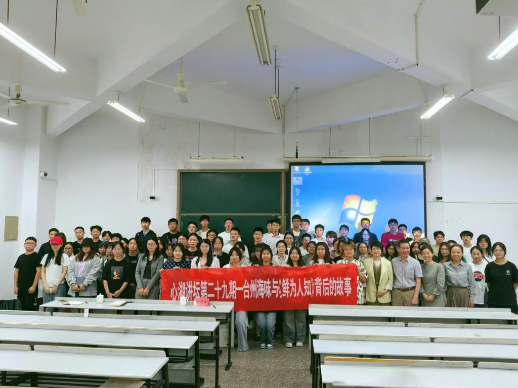 10月16日晚,第29期心湖讲坛在椒江校区2-301教室举行。活动邀请了中国散文家协会会员,浙江省作家协会会员叶青老师为同学们作“台州海味与《鲜为人知》的故事”的主题讲座。心湖书院院长杜才平、学校办公室副主任徐敏、辅导员李凌及70余位心湖学子聆听讲座。