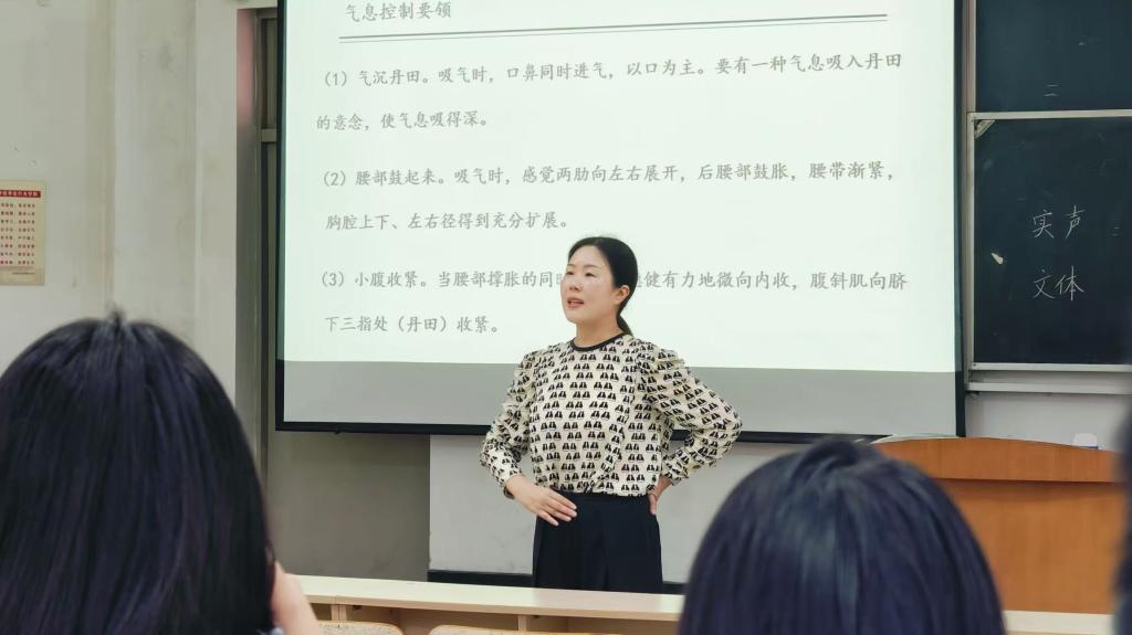 10月17日下午,马妙燕老师为同学们作《小学语文朗读技巧的运用》讲座。讲座伊始,马老师便直击小学生朗读中的拖沓问题,并随机听取了几位师范生的朗读,指出朗读的四大要领:实声饱满、文体精准、停顿得当、归音清晰。她系统性地讲解了发声基础,包括气息控制、口腔调整及吐字技巧,并通过《回乡偶书》《司马光》等经典作品的朗读练习,引导师范生们在实践中逐步掌握这些技巧。最后,马老师深入剖析了朗读的过程,强调理解、体验与表达是朗读艺术的核心。为此,她结合《小马过河》的文本分析,引导学生们亲身体验不同角色的语音语调,进一步加深对朗读艺术的理解和感悟。