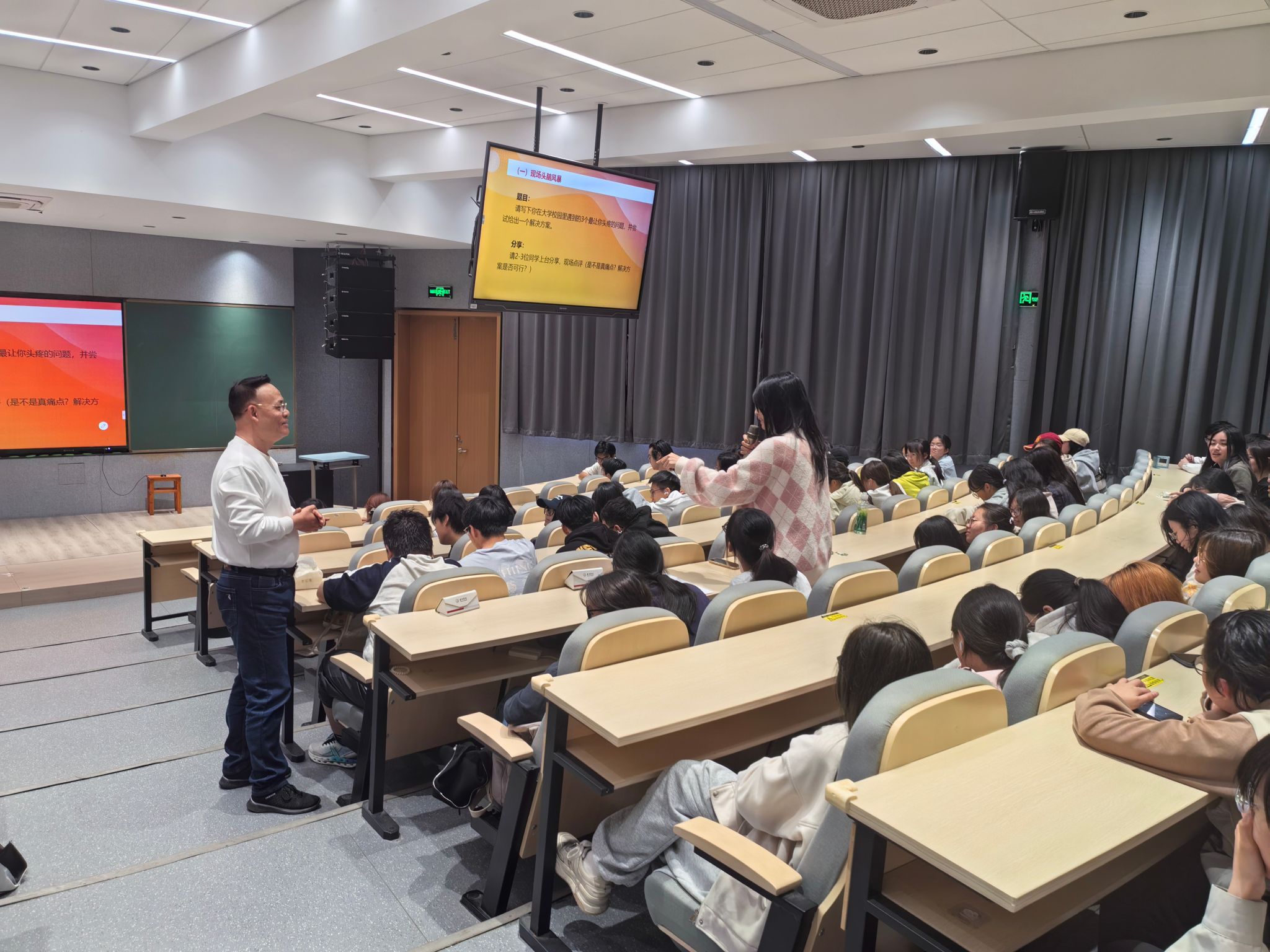 交流互动环节,现场学生踊跃提问,就未来规划、就业创业选择等问题向导师咨询,两位导师逐一耐心细致解答,为学生答疑解惑、精准指导,现场学习氛围浓厚热烈。