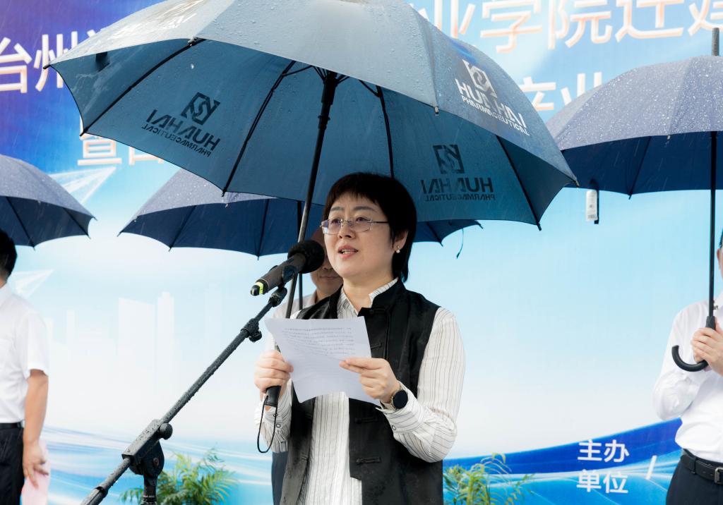 华海药业原料药事业部总经理孟艳华作为企业代表祝贺台州学院头门港产业学院迁建暨台州湾生物医药产业学院揭牌,表示台州学院作为一所立足地方的应用型高校,在人才培养、科技创新、产业升级、促进就业和社会服务等方面发挥了举足轻重的作用。并期待与产业学院进一步深化合作,共同培养人才,推动科技成果转化,为台州生物医药产业高质量发展贡献力量。