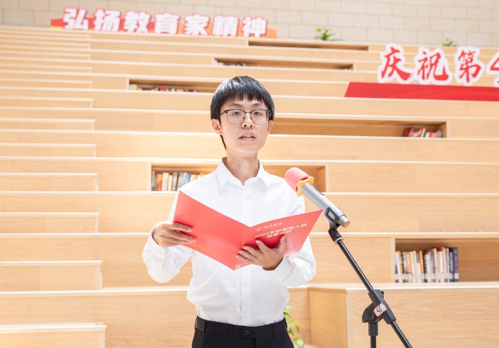 清华大学博士、生命科学学院赵哲老师作为新教师代表发言。他号召新教师,要适应新角色,尽快成长;设立新目标,持之以恒;迎接新挑战,迭代升级。