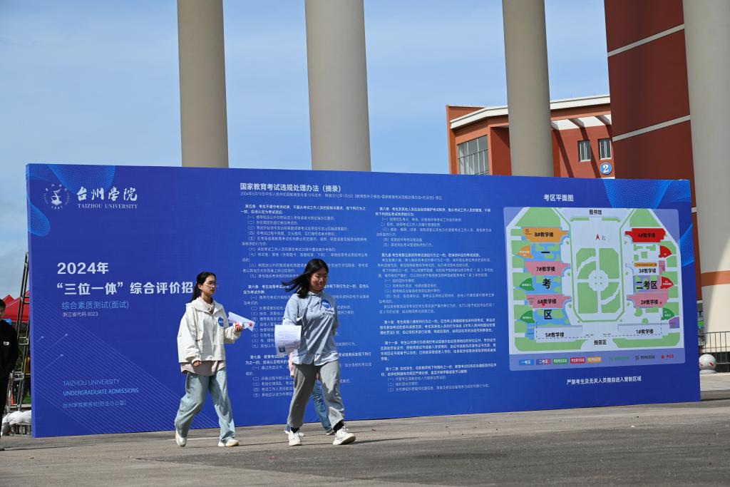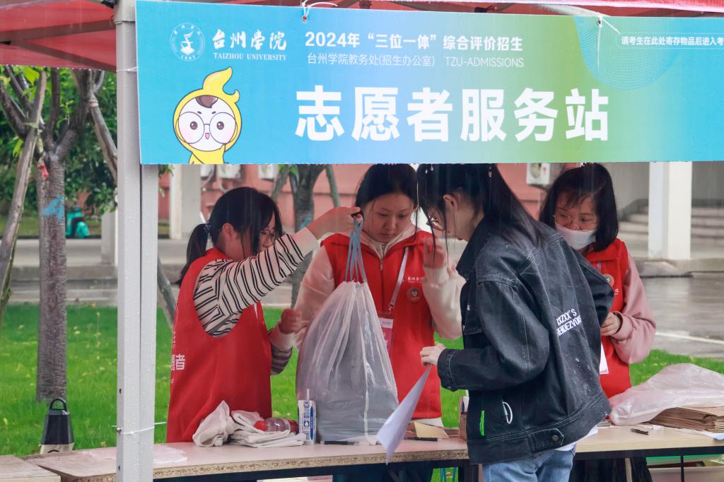 本次“三位一体”综合素质测试工作在综合协调组、纪检监察组、宣传组、考务组、评委组、命题组、保障组、安保组以及全校师生紧密配合下,顺利圆满完成。考生和家长对学校“三位一体”综合素质测试的组织工作非常满意,考生吴同学走出考场时笑着说:“现场的安排十分井然有序,让我感觉很安心,希望今年9月能够再次踏入台院的校园。”来自温州的一位学生家长笑着说:“建议孩子来台院是因为学校在省内实力不错,特别是师范类专业。期望孩子能够发挥出自己的正常水平,在测试中取得满意的成绩。”现场的志愿者们虽然忙碌,但依然面带笑容、乐此不疲,23历史(师范)的张力炀表示:“去年自己也参加了台院的三位一体,今年希望能通过志愿者服务来回报学校,也希望能为下一届学弟学妹提供更好的服务。”