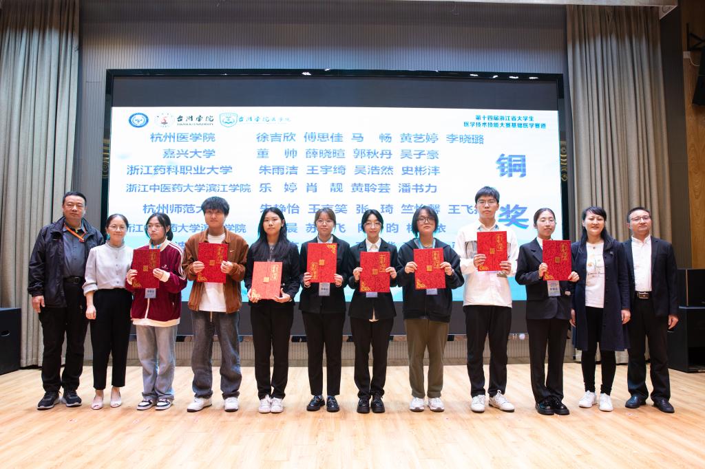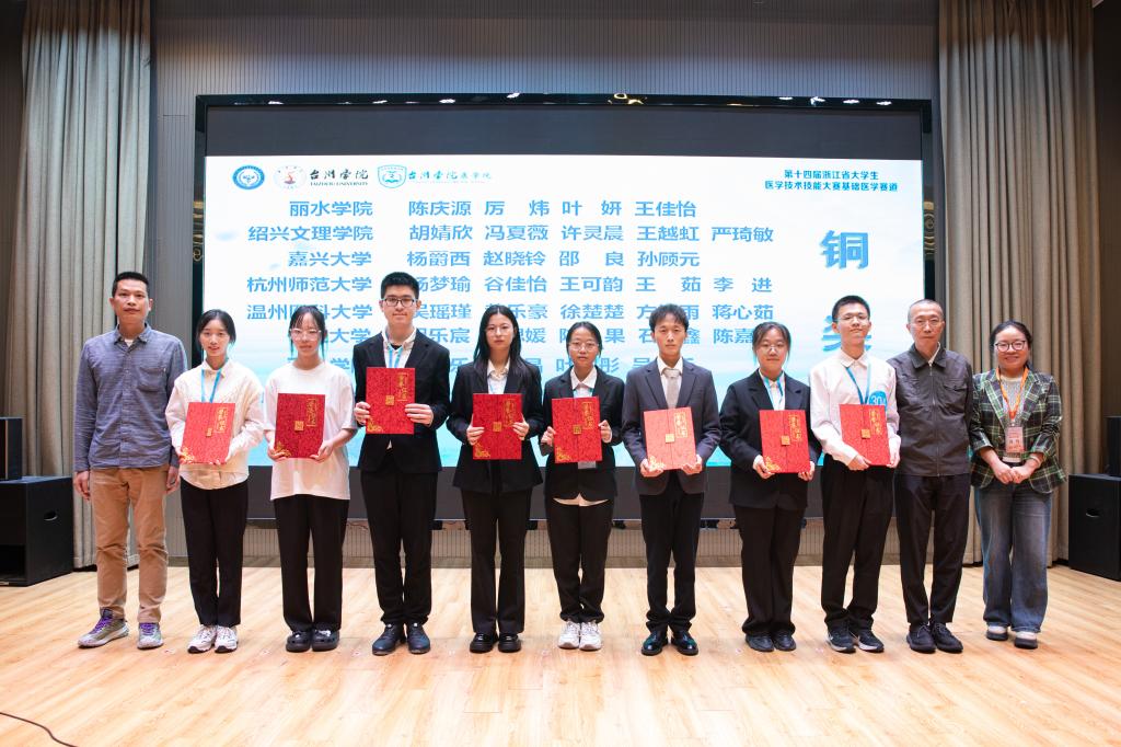 经过为期两天的激烈竞争,最终来自台州学院、温州医科大学、浙江中医药大学、绍兴文理学院、杭州医学院、丽水学院和杭州师范大学的7支代表队荣获金奖,另有10支队伍荣获银奖,16支队伍荣获铜奖。台州学院、温州医科大学、浙江中医药大学和杭州师范大学荣获本次大赛优秀组织奖。
