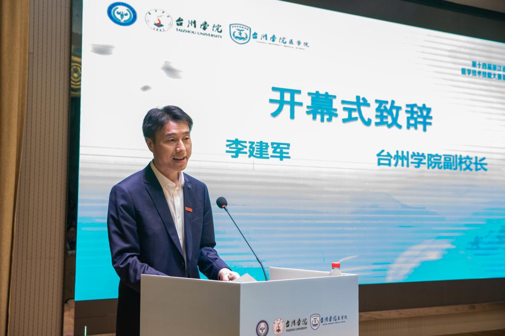 开幕式上,李建军致欢迎辞,他代表学校向参加大赛的老师和同学表示欢迎,强调了基础医学是人类在探索医学科学领域过程中的重要组成部分,并介绍了台州学院医学院在医学人才培养方面的成就。他提及今年是基础医学赛道纳入省大学生医学技术技能大赛的第2个年头,大赛围绕着“以赛促教、以赛促改、以赛促学”的医学教育理念,夯实基础医学知识、提高动手操作能力、提升人才培养质量,致力于培养专业基础扎实,实践能力突出,创新能力较强的高素质应用型医学人才。他希望参赛选手以大赛为平台、求知问道意常新;以高校为舞台、学医求索心不减;以精细为目标、研理笃行志更坚。