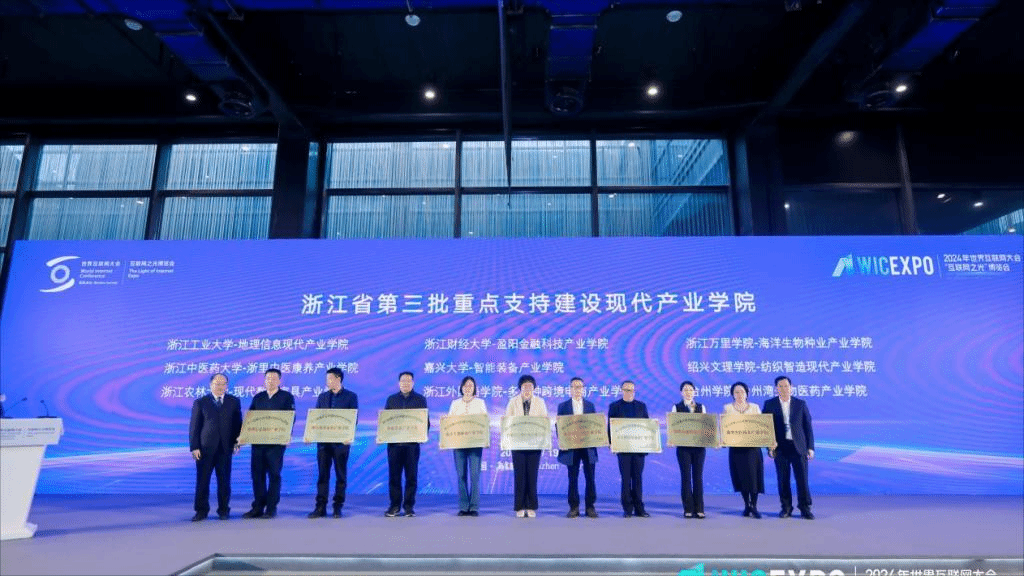 据悉,浙江省产教融合推进会是2024年世界互联网大会、“互联网之光”博览会的有机组成部分,在工业和信息化部教育考试中心和浙江省委人才办的支持下召开,浙江省经济和信息化厅、浙江省教育厅共同主办,由浙江省数字经济发展中心、浙江省技术创新服务中心、浙江省产业发展中心、浙江省智慧城市促进会共同承办。吸引了来自政府部门、行业企业和高校代表200余人参会。我校教务处、医药化工学院相关负责人参加推进会。