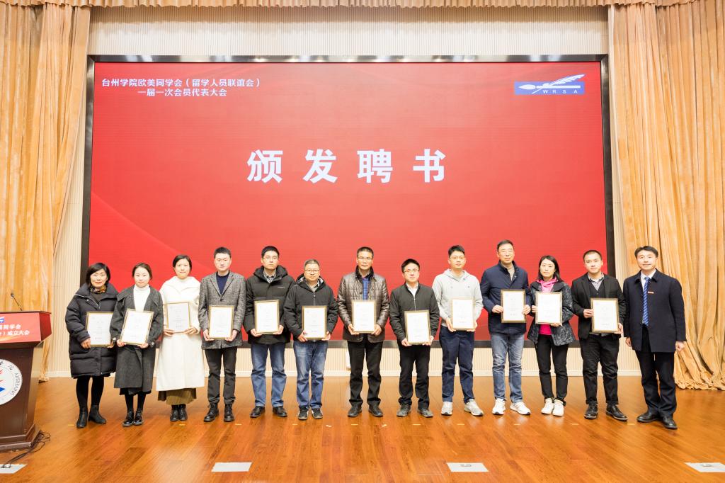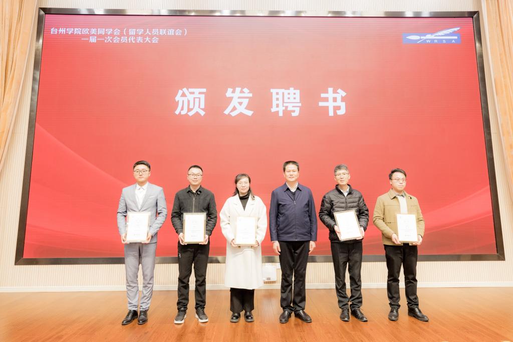 会上,吴银银宣读校党委的批复文件,洪振华、李建军共同为台州学院欧美同学会(留学人员联谊会)揭牌,并向第一届理事会成员颁发聘书。