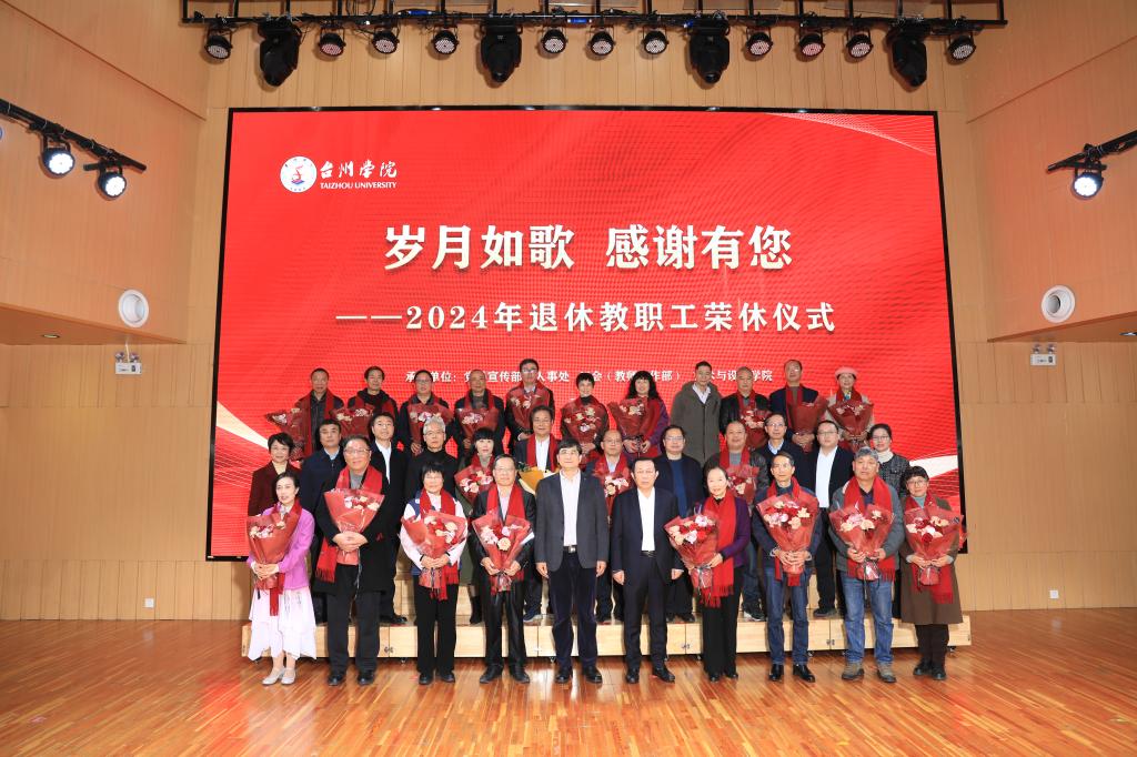 12月25日下午,“岁月如歌,感谢有您”台州学院2024年退休教职工荣休仪式在椒江校区隆重举行。校领导朱坚、乐传永、楼胆群、杨健国、项凤日、李建军、丁一志、蔡海江、郑丽君、吴银银出席仪式。