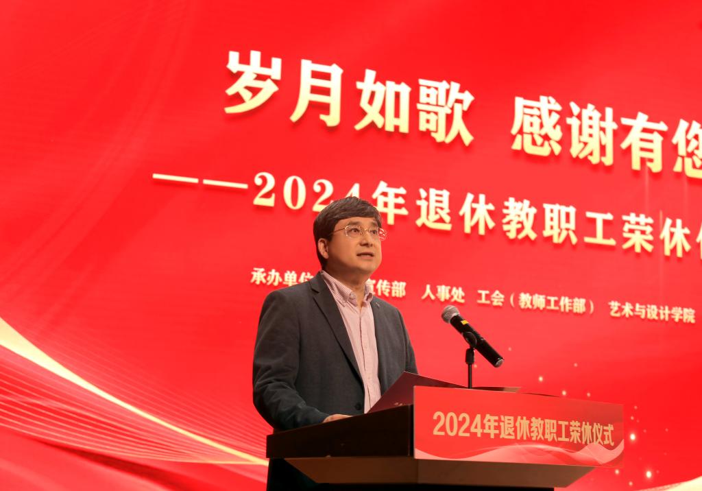 校党委书记朱坚在致辞中代表学校向38位退休教职工为学校事业改革、发展、建设作出的贡献表示崇高的敬意和诚挚的感谢。他说,教职工荣休仪式既饱含着学校对退休教职工的感谢之情、留念之情和关爱之情,也是引导全校教职工牢记教书育人、管理育人的初心使命,增强教师的职业荣誉感和自豪感,不断传递师德力量,打造“有温度的教育”,将教书育人、无私奉献的信念植根于每位教职员工的心中,让尊师重教的文化在校园里持续传承和发扬。