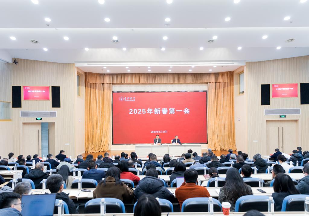 一年春来早,奋进正当时。2月15日,学校召开2025年新春第一会,为全年发展定基调、划重点、指方向。校党委书记朱坚主持会议并讲话,强调要统一思想、凝聚共识,统筹推进升大申博,众志成城争创一流,为加快打造特色鲜明的高水平应用型大学而团结奋斗。校长、党委副书记乐传永部署新学期工作,校领导班子成员出席会议。