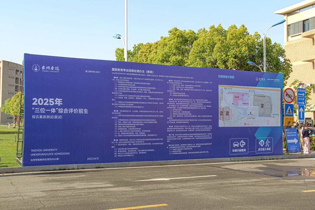 4月13日,学校2025年“三位一体”综合评价招生综合素质测试(面试)在椒江校区顺利举行。校党委书记朱坚,副校长、党委委员李建军在现场指导相关工作。省市两级教育考试机构到校对测试工作开展了巡视。