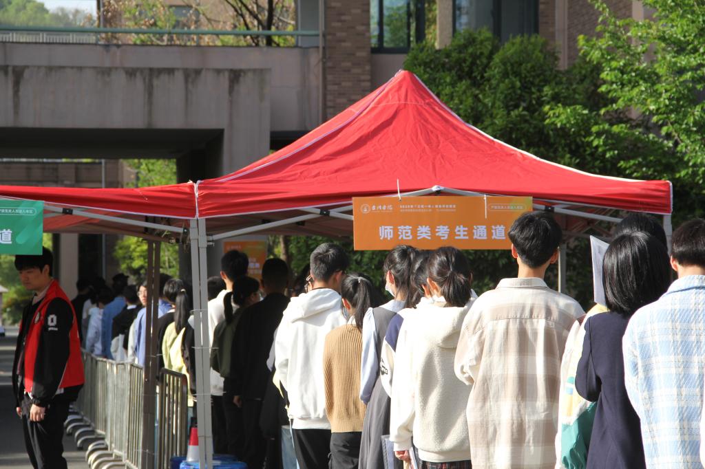 测试当天,学校实现了考生入场、物品寄存、集中候考、分类测试、考后管理全流程服务,做到了全流程无缝式引导,让考生“考试安心”。在测试过程中,有效强化了流程环节间技术应用,通过智能安检门、人脸校验、计算机随机排号相结合,确保了考试安全。在评委选聘、工作人员选配、考生测试试场排号上,通过纪检监督、随机抽签实行“三随机”,让考试公平运行。通过设置随行人员休息区、丰富校内路线指引、配足配齐志愿者,为进校人员在校内提供便利,让考试更加暖心。