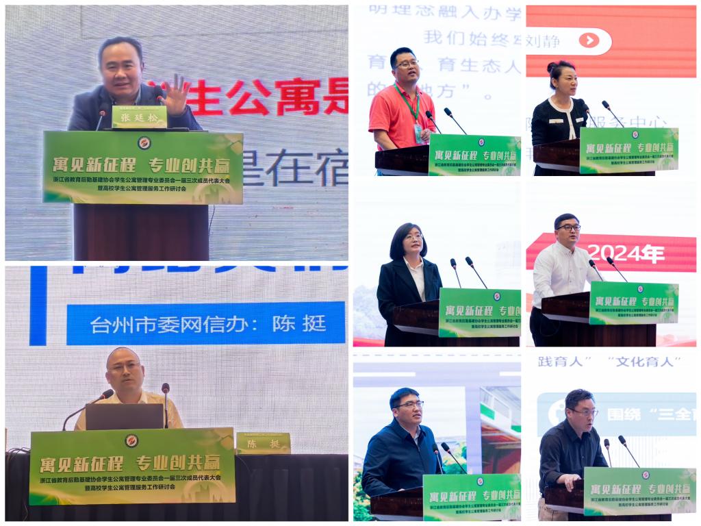 4月24-26日,由我校承办的浙江省教育后勤基建协会学生公寓管理专业委员会一届三次成员代表大会暨高校学生公寓管理服务工作研讨会在台州召开。副校长、党委委员杨健国,浙江省教育后勤基建协会秘书长、浙江师范大学机关党委书记王利民,全国寓专会副主任兼秘书长、浙大新宇集团党委书记、执行总裁郗蕴超,省寓专会主任、浙江工业大学容大后勤集团党委书记许天雷等出席大会。省寓专会副主任、杭州师范大学后勤服务中心党委书记岑建旭,宁波大学后勤管理处副处长何玉环分别主持会议。