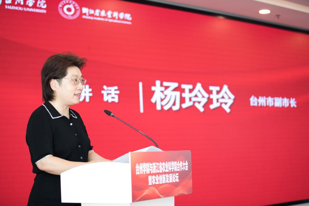 杨玲玲在讲话中强调,台州学院与浙江省农业科学院签订战略合作协议,对于台州市加强农业领域科技创新、产业升级和人才支撑有着十分重要的意义,必将为台州农业现代化发展注入澎湃动力。希望合作双方共同致力于核心技术攻关,围绕台州特色农业产业,加强农业科研资源力量统筹,取得更多创新性、突破性成果,为台州现代农业发展打开新局面;共同致力于农业产业提质增效,共建特色农业产业研究院、科技小院、联合实验室等成果转化平台,加快农业高新技术在台州的产业化落地转化;共同致力于农业高端人才引育,深化人才资源互通,探索建立人才共享机制和联合引才模式,以硕士学位点共建为契机,联合培养一批农业产业规划、农产品精深加工、设施农业等领域的乡村实用型人才,共同打造校院合作的“台州样板”。