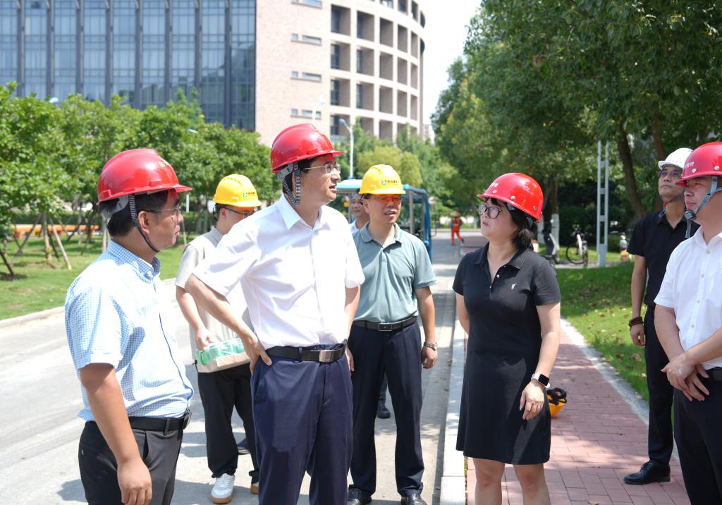 在椒江校区无线校园网项目施工现场,朱坚详细询问工程进度与施工难点,强调该项目直接关系全体师生的工作学习体验,要求施工团队在严守高温作业安全规范的前提下,紧盯工期节点,确保高效、平稳完成升级改造,为校园信息化建设筑牢基础。