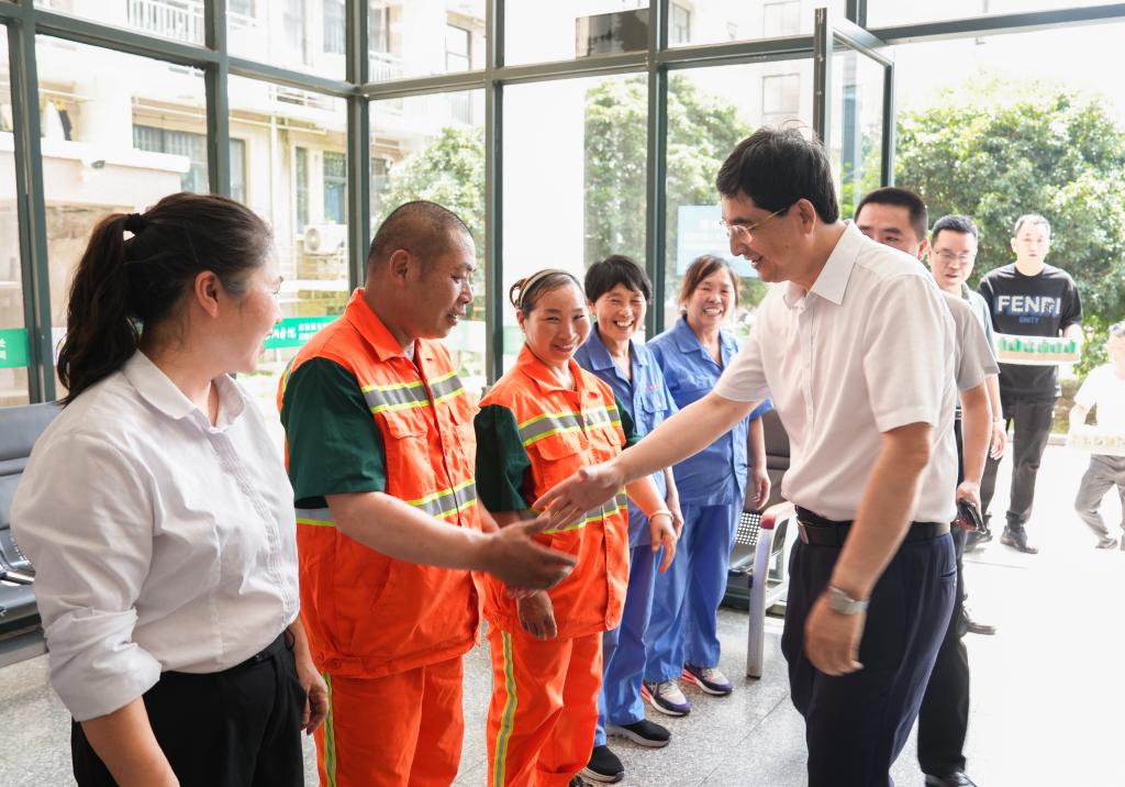 7月16日上午,校党委书记朱坚走访慰问两校区暑期坚守岗位的工作人员和留校学生,为大家送去学校的关怀与夏日清凉。