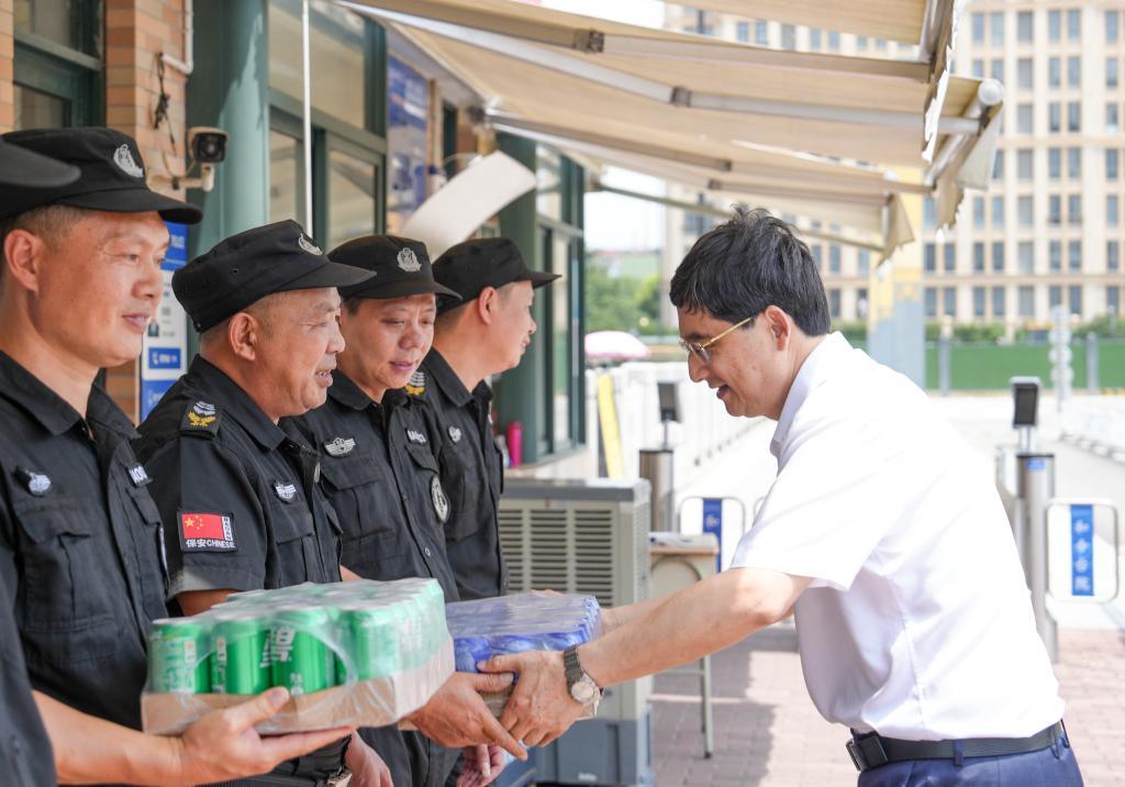 朱坚还先后走访学生公寓、校门岗亭和图书馆,看望慰问暑期在岗工作人员,对大家暑期坚守岗位的奉献精神表示感谢,并叮嘱要时刻绷紧安全这根弦,细化防暑降温措施,继续以高度的责任感做好暑期校园服务保障工作,为暑期留校师生营造安全舒适的校园环境。