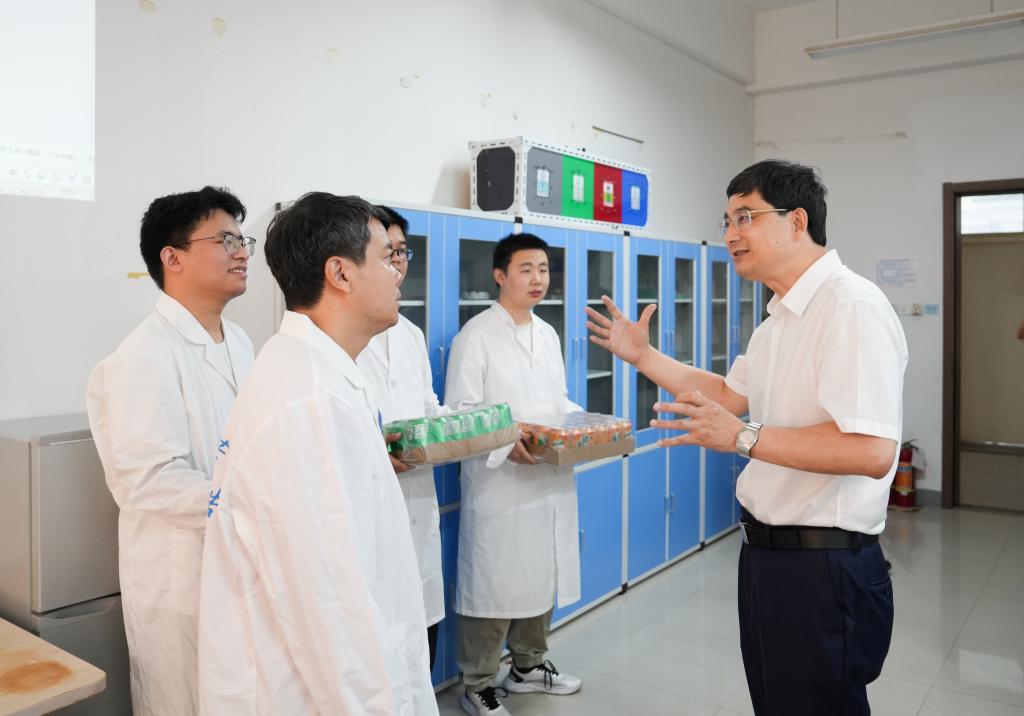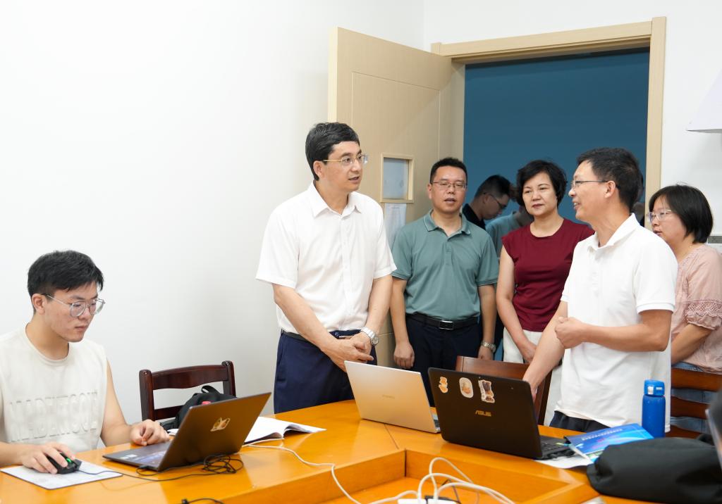 来到纳米磁性材料实验室,朱坚认真听取科研团队暑期攻关进展汇报,对师生们取得的阶段性成果给予肯定。他悉心询问团队在设备保障、科研经费等方面的需求,表示学校将持续优化科研服务体系,为“有组织科研”保驾护航。