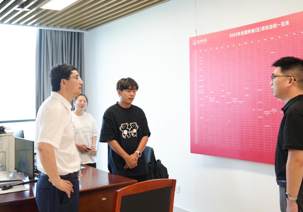 科技综合楼内,朱坚与招生工作人员深入交流,详细了解今年招生录取工作进展,并指出,招生工作是学校人才培养体系的“第一粒扣子”,要严格执行教育部等相关政策,确保招生工作公平公正、规范有序。随后,他看望了备战全国大学生制药工程设计竞赛的师生,关切询问备赛进度与团队构成,鼓励参赛师生沉着应战、争创佳绩。