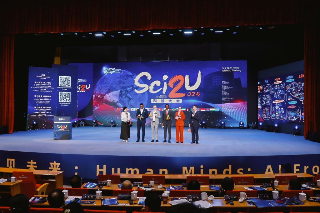 10月30日,Sci2U科普大会在我校椒江校区大会堂举行。来自全球五大洲22个国家的科学传播专家、科技工作者、教育从业者及青少年代表齐聚一堂,围绕“凡人驭AI,智见未来”主题,探讨普通人如何通过驾驭AI工具拓展认知边界,推动科学传播事业迈向新阶段。浙江省政协副主席张学伟,浙江省科普联合会会长、十二届浙江省政协副主席周国辉,省科协党组书记、副主席吴晓东,省科学技术厅党组成员、副厅长曾肖芃,省科协党组成员、副主席陆锦,台州市副市长李昌明,台州市政协副主席陈建勋,校党委书记朱坚,副校长、党委委员李钧敏出席活动。