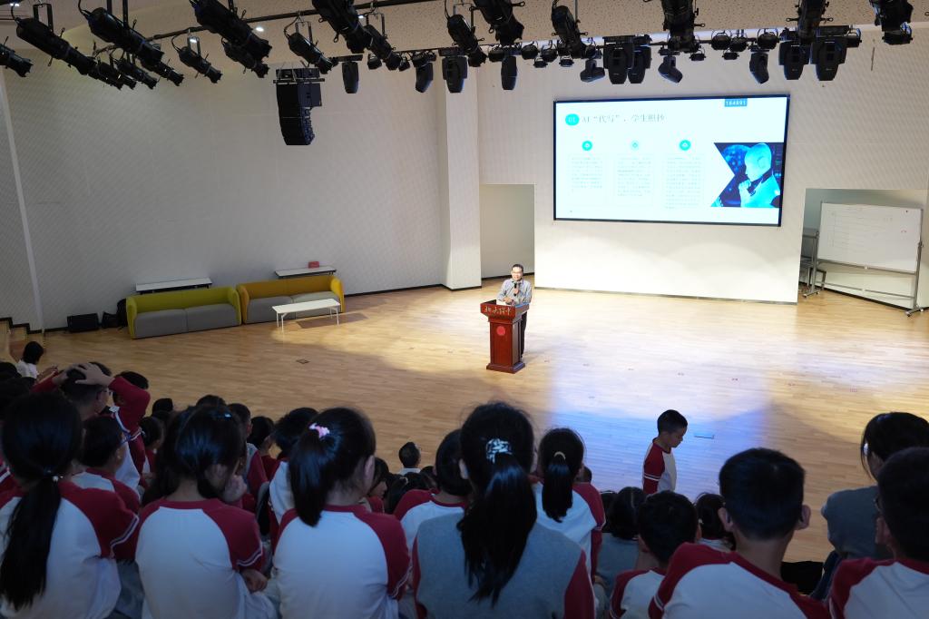 大会现场,学校师生多项AI实践生动的案例不仅展现了技术的普惠价值,更证明了在智能时代,每一位“凡人”都拥有驾驭技术、共创未来的能力与机会。艺术与设计学院学生张艺涵运用国产AI工具“启明星”平台,创作了大会主题曲《凡人科学共创未来》,并由学生合唱团共同演绎;人工智能学院教师徐宏辉介绍迎宾机器人“台小智”,构建起生动的AI教学场景;“机蟹革命”团队负责人、人工智能学院研究生王忆轲分享了如何驾驭AI,将课堂知识转化为革新传统青蟹养殖的产业实践。