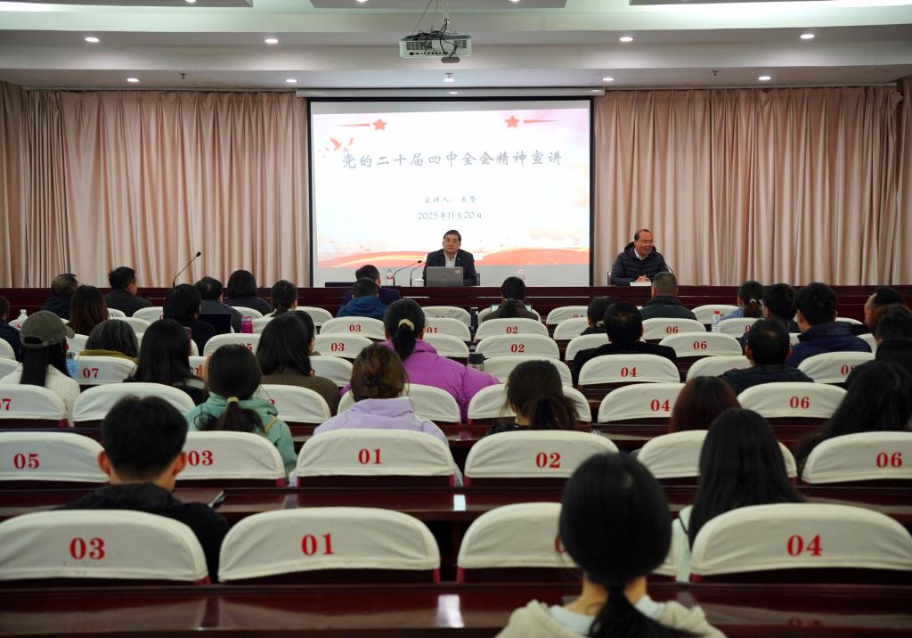 校领导围绕党的二十届四中全会核心要义,对当前我国发展情况展开系统解读,指出我国经济社会发展取得新的开创性进展、突破性变革、历史性成就,在全面建设社会主义现代化国家的壮阔征程上迈出了坚实有力的一步。校领导强调,这场在中国式现代化壮阔进程中召开的重要会议,准确把握我国发展的历史方位,深入分析国际国内形势,明确了未来五年经济社会发展的指导方针和主要目标,要从历史传承、理论创新、实践指引、国际格局等四个维度进行系统把握、深刻领会。
