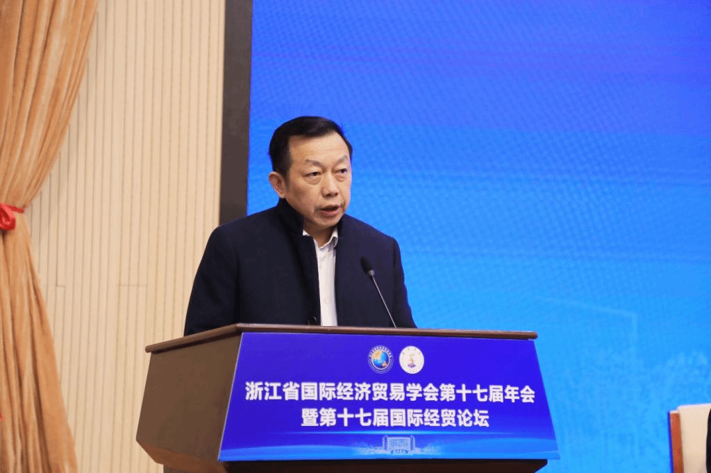陈志成代表省商务厅对年会召开表示热烈祝贺。他介绍了全省商务系统深入学习贯彻党的二十届四中全会精神,围绕高水平对外开放和构建新发展格局,积极应对复杂严峻的国际经贸环境挑战,在稳外贸、强平台和促改革等方面取得的阶段性成效。同时,他也对浙江省国际经济贸易学会进一步强化成果转化和决策支撑功能,凝聚专家智慧、形成研究矩阵,持续产出高质量研究成果,更好服务“十五五”开放型经济发展提出了更高期望。
