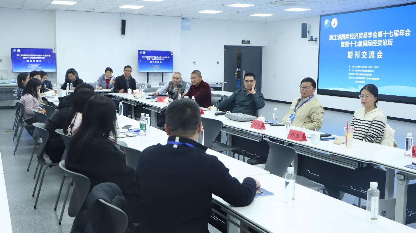 12月12日下午,浙江省国际经济贸易学会年会还举办了期刊交流会。段文奇主持会议。《经济理论与经济管理》期刊主编杨其静、《国际经贸探索》期刊主编陈伟光、《国际商务研究》期刊社社长高运胜、《国际贸易问题》期刊编审武齐、《财经问题研究》期刊编辑部主任孙艳作专题报告。此次交流会深化了期刊与学术界的协同联动,为浙江省国际经济贸易领域研究提供新思路,助力提升学术影响力与政策服务效能,进一步推动区域开放型经济高质量发展。
