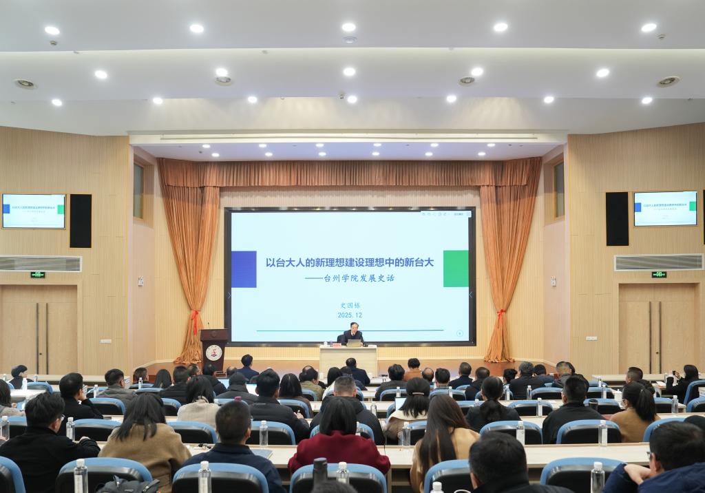 12月16日上午,学校在椒江校区国际会议厅举办“第八期高水平应用型大学建设论坛”。本次论坛特邀高等教育管理专家、工程教育专家史国栋教授作题为《以台大人的新理想建设理想中的新台大——台州学院发展史话》的专题报告。校长、党委副书记乐传永,副校长、党委委员李钧敏出席。副校长、党委委员李建军主持。全体中层干部及教育督导参加本次论坛。