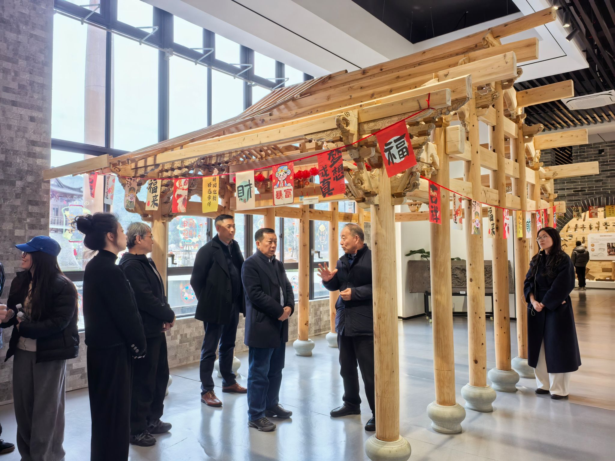 乐传永一行还在汇溪镇镇长李洋等陪同下实地考察了汇溪镇古建营造技艺博物馆的各个展区,了解馆内收藏的古建构件、营造技艺展示、非遗文化传承等内容,沉浸式感受汇溪古建文化的深厚底蕴与独特魅力。