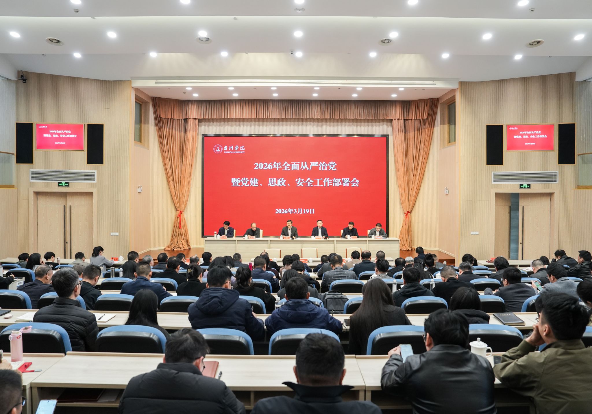 3月19日下午,台州学院召开2026年全面从严治党暨党建、思政、安全工作部署会,深入学习贯彻党的二十届四中全会精神,全面落实二十届中央纪委五次全会、全国教育工作会议以及省委十五届八次全会精神,分析研判当前形势,部署2026年重点任务。