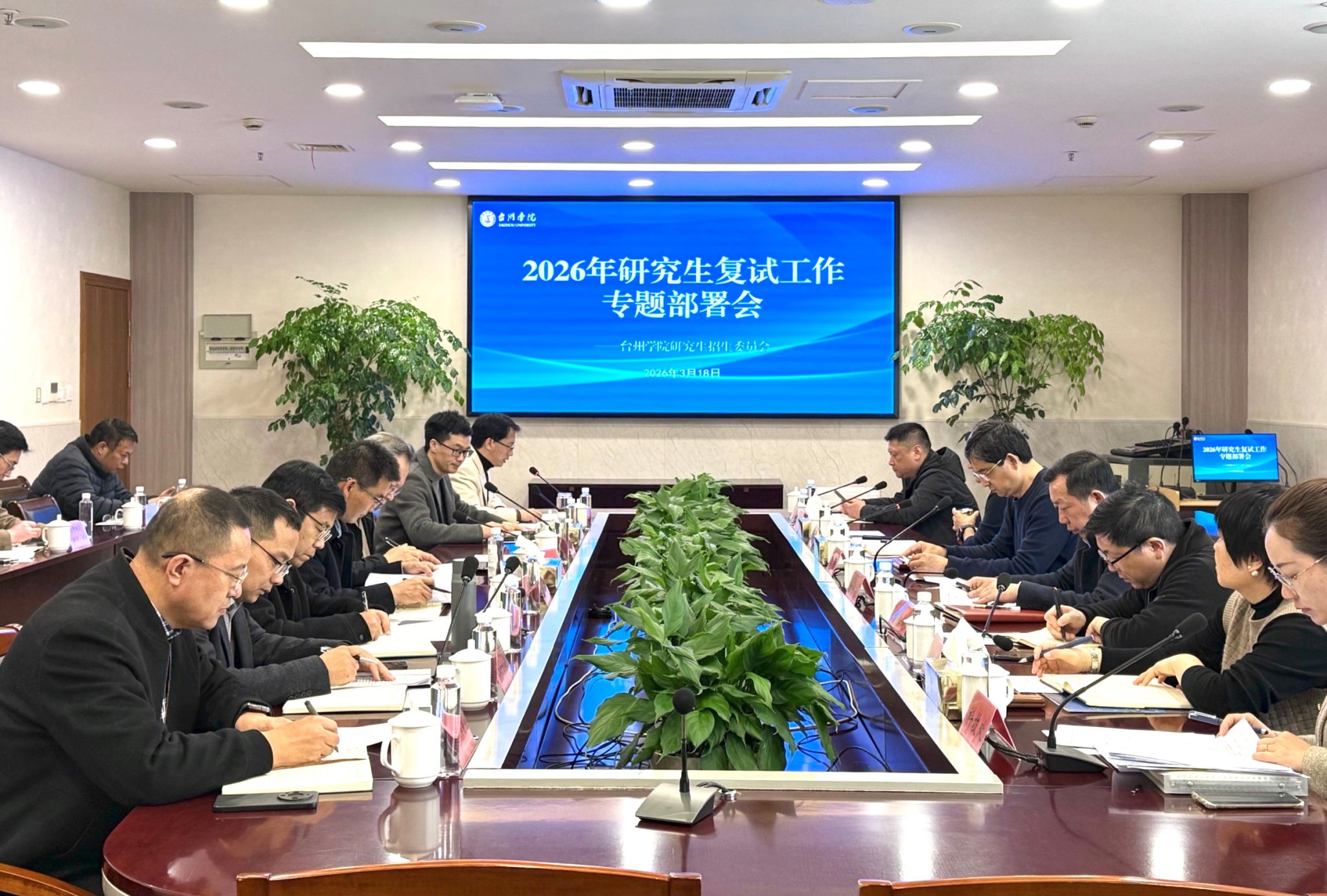 会议还传达学习了上级有关部门关于2026年硕士研究生招生复试工作的会议精神与文件要求,审议通过了《台州学院2026年硕士研究生招生复试录取工作办法》,为学校今年研究生招生复试录取工作的开展划定了工作准则、明确了实施规范。