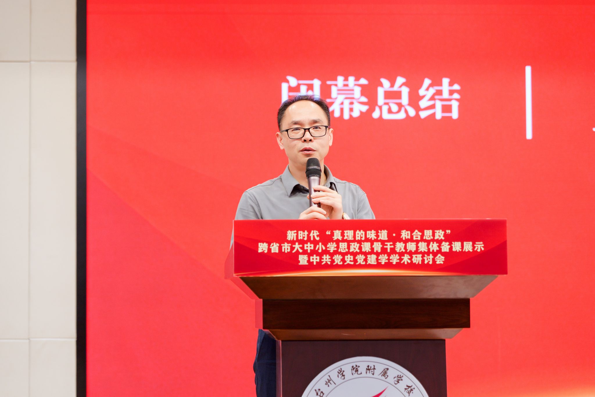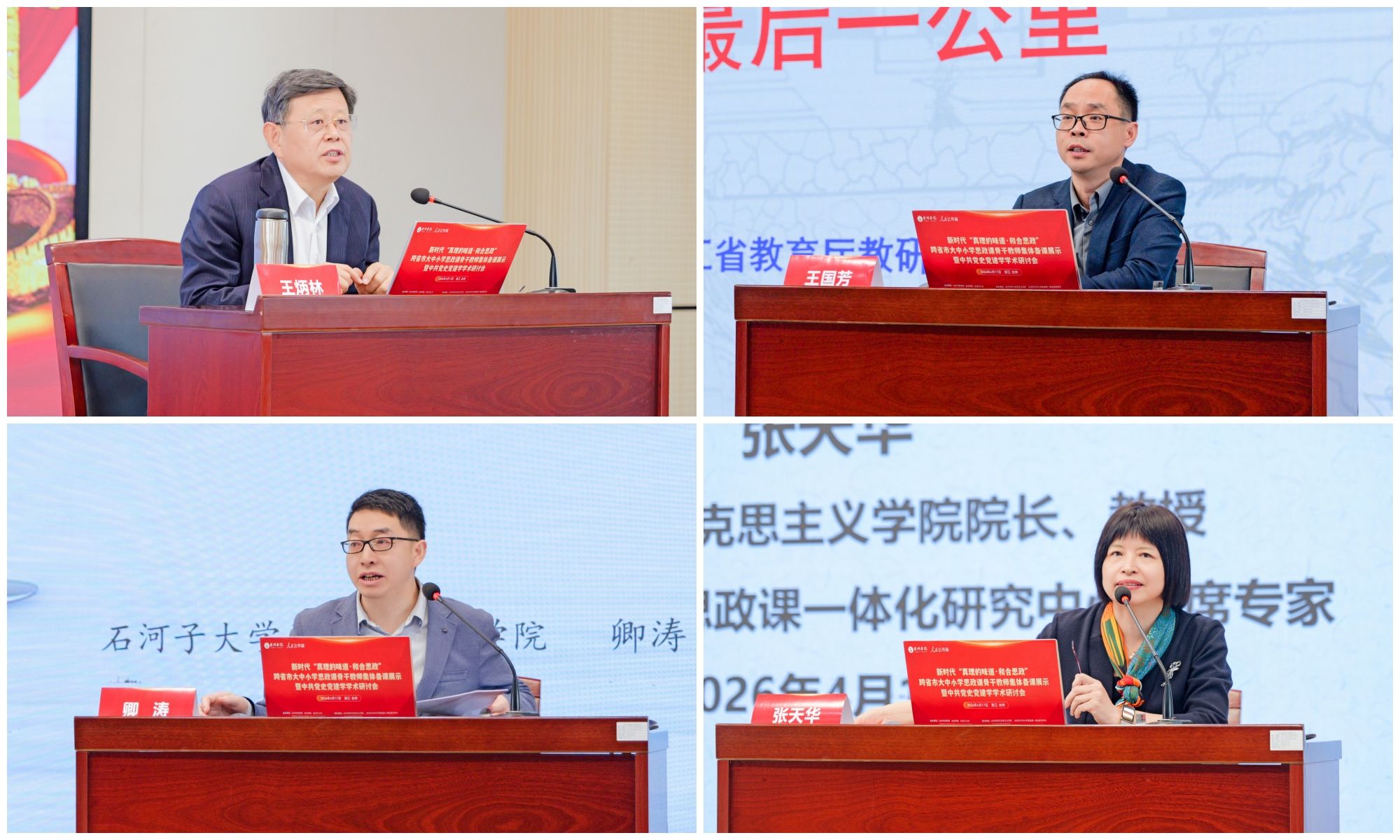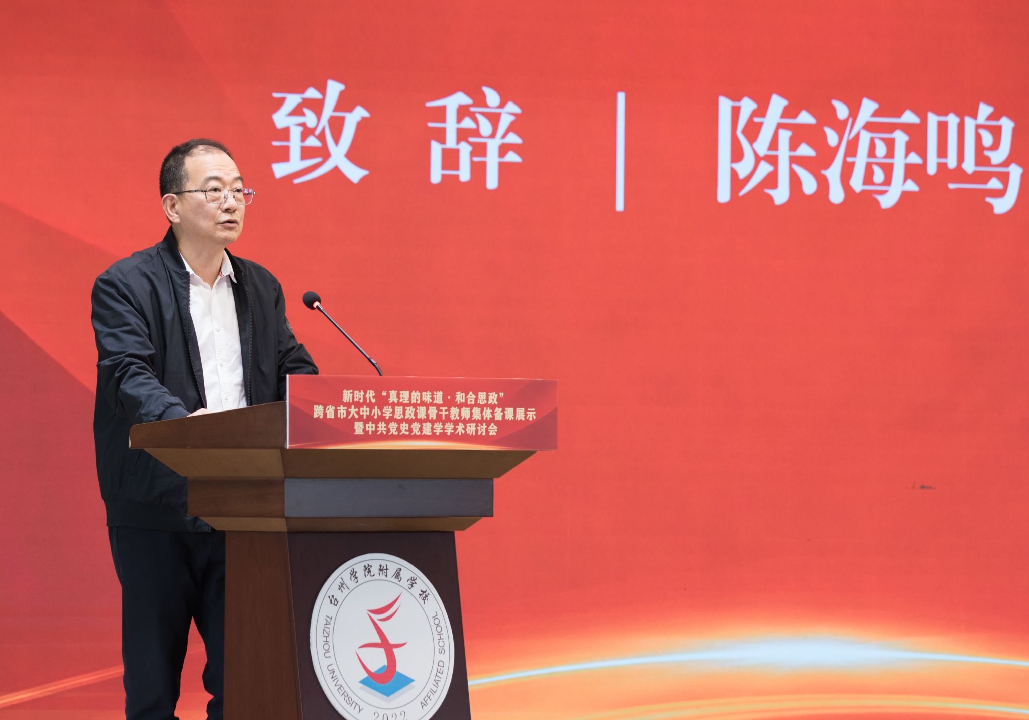 最后,郑浩在讲话中指出,本次“真理的味道・和合思政”跨省市大中小学思政课骨干教师集体备课展示暨中共党史党建学学术研讨会,是深化思政课一体化建设、推动东西部协同育人的重要实践。他表示,台州持续推进大中小学思政教育一体化建设,“和合思政”品牌成果丰硕,相关实践荣获省级教学成果一等奖并入选教育部典型案例,学科平台不断夯实,与新疆生产建设兵团多地的教育合作持续深化。郑浩强调,思政课是落实立德树人根本任务的关键课程,全市思政战线要提高政治站位、强化理论武装,高校要发挥引领作用,教师要守正创新提升育人能力,持续深化跨区域交流协作,不断扩大“和合思政”影响力,为培养时代新人、谱写中国式现代化台州篇章贡献更大力量。