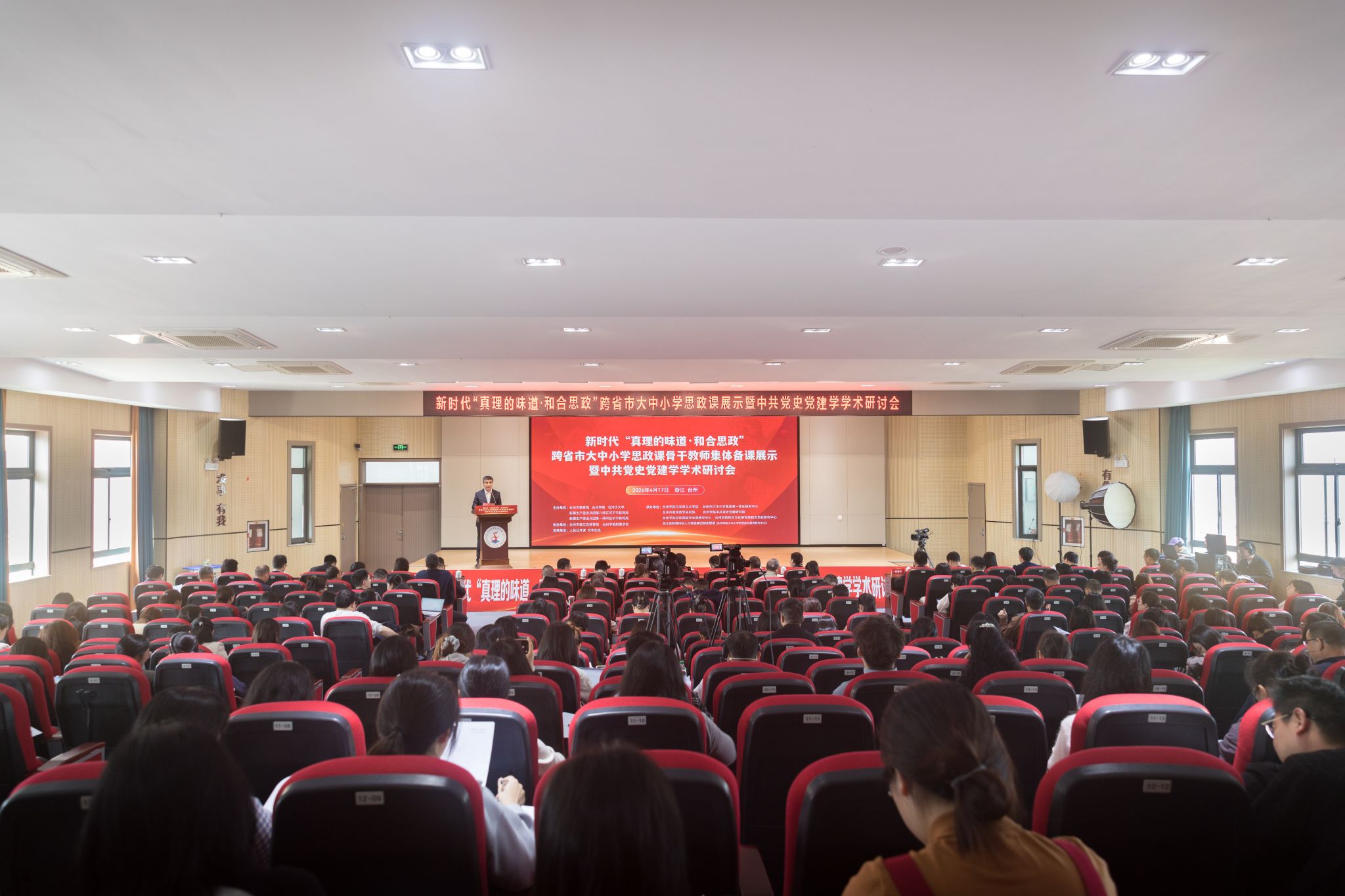 为深入学习贯彻党的二十大精神、落实立德树人根本任务,值此习近平总书记主持召开学校思想政治理论课教师座谈会并发表重要讲话七周年之际,2026年4月17日,由台州市教育局、台州学院、石河子大学、新疆第八师石河子教育局、新疆第一师阿拉尔市教育局联合主办,台州市大中小学思政课一体化研究中心、台州学院马克思主义学院、台州市教育教学研究院共同等共同承办的新时代“真理的味道・和合思政”跨省市大中小学思政课集体备课展示暨中共党史党建学学术研讨会在台州学院附属学校成功举行。